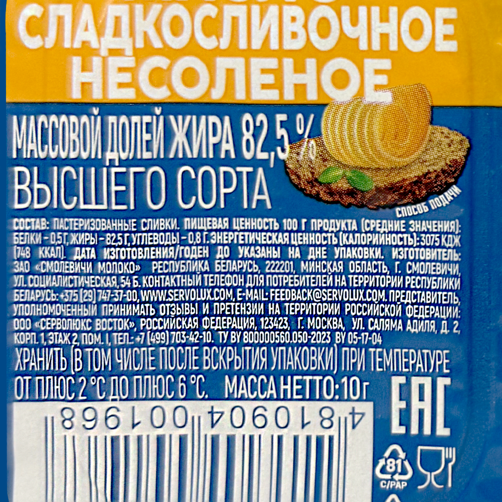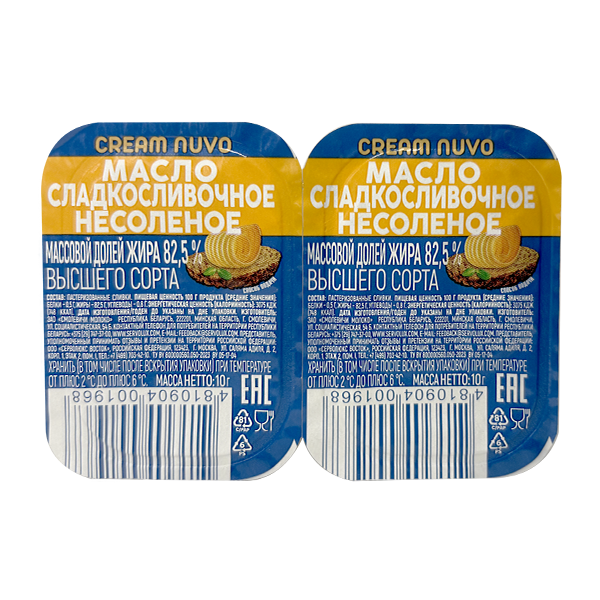 Масло сладкосливочное несолёное, ТМ Cream nuvo, 82,5%, (дип-пот, 10г)