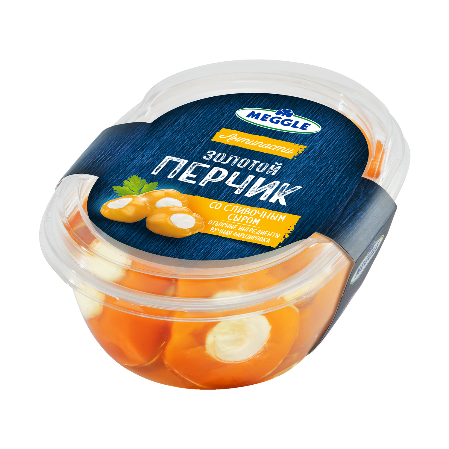 Антипасти (от итал. antipasto, мн. ч. antipasti, anti - «до» и pasto - «еда») – это традиционная холодная или горячая итальянская закуска. Закуски ТМ Meggle приготовлены по уникальным рецептам, в качестве начинки используется нежнейший сыр собственного производства, а процесс фаршировки происходит вручную.