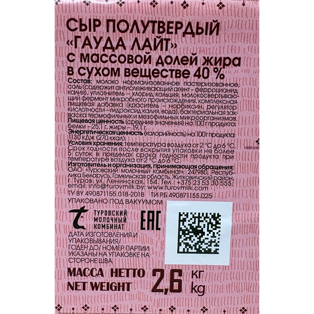 Сыр Гауда light ТМ "Басни о сыре"- традиционный голландский сорт сыра, произведенный из цельного коровьего молока. Молодая Гауда отличается свежим сливочным вкусом с легкой кислинкой. Сыр отлично поддается плавлению, поэтому очень часто его используют в приготовлении соусов, выпечки, горячих бутербродов.