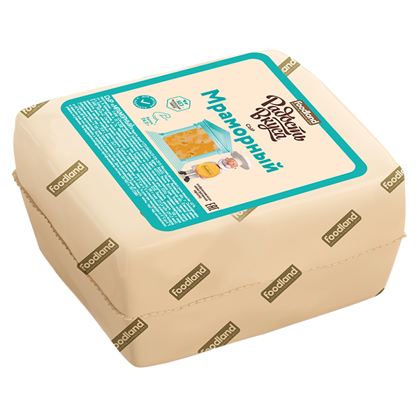 Мраморный сыр ТМ Радость Вкуса изготавливается из коровьего молока и выделяется среди прочих сыров необычным рисунком на срезе. Красивые разводы белого и оранжевого цвета изысканно переплетаются, напоминая мраморную текстуру.Сыр имеет нежный сладковатый вкус со сливочными нотками.