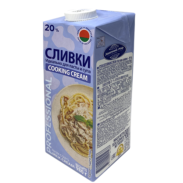 Сливки питьевые стерилизованные, 20%, ТМ Молочный мир (980 мл)