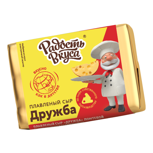 Обладает натуральным сырным, знакомым с детства вкусом.Нежный вкус сыра "Дружба" подойдет для бутербродов, разных видов закуски, а также приготовления крем-супов.