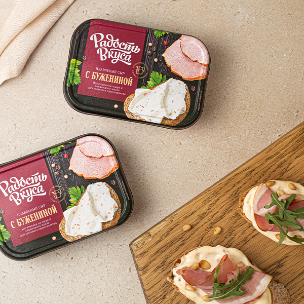 Плавленый сыр "С бужениной" ТМ Радость вкуса (ванночка, 180 г)