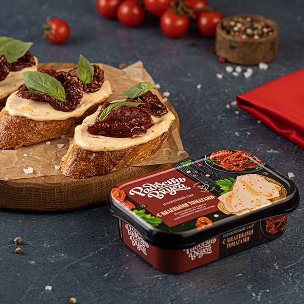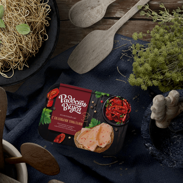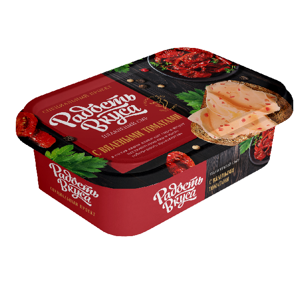 Плавленый сыр с вялеными томатами - яркая новинка с уникальной рецептурой от ТМ Радость вкуса.Сыр создан для тех, кто любит поострее. Красный перчик и пряные травы обеспечат пикантное послевкусие.