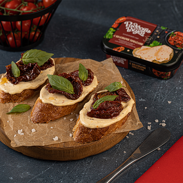 Свежий хрустящий багет в дуэте с плавленым сыром "Вяленые томаты" - залог вкусного перекуса!