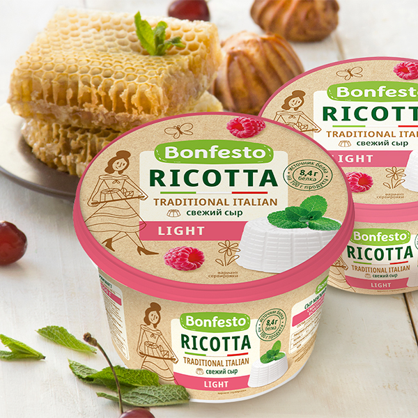 Сыр мягкий «Рикотта» — разновидность сывороточных сыров. Её производят из сыворотки, остающейся после приготовления моцареллы. Помимо сыворотки используется молоко. Рикотта содержит витамины, микроэлементы, легкоусвояемые белки – витамин А и витамины группы В, а также значительное количество кальция. Рикотта считается многофункциональным сыром: его используют в приготовлении десертов, основных блюд, салатов. Это отличная начинка для всех видов пирогов, равиоли и пасты, придающая блюду пикантный и нежный вкус.