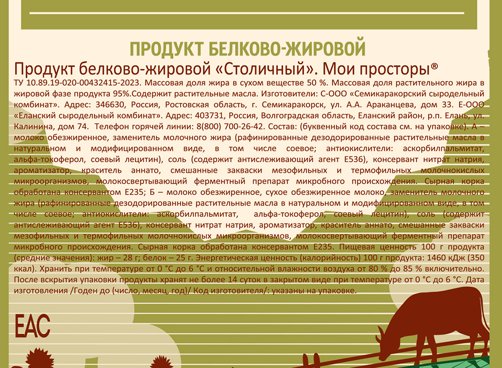 Продукт белково-жировой "Столичный", ТМ Мои просторы (брус)