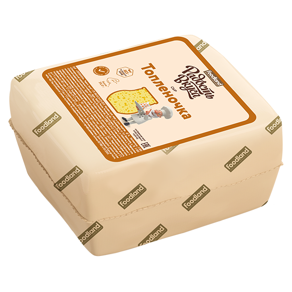 Сыр Топленочка ТМ Радость Вкуса отличается нежным вкусом топленого молока, обладает насыщенным ароматом, имеет мелкий резной глазок.Идеально сочетается с фруктами, ягодами, орехами и медом.