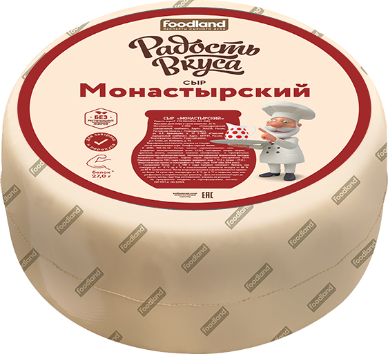 Сыр Монастырский ТМ Радость вкуса имеет мелкий резной глазок и нежный вкус. Подходит как для приготовления различных блюд, так и в качестве самостоятельной закуски.Благодаря сыру Монастырский получаются бесподобно вкусные бутерброды с хлебцами и помидорами черри.
