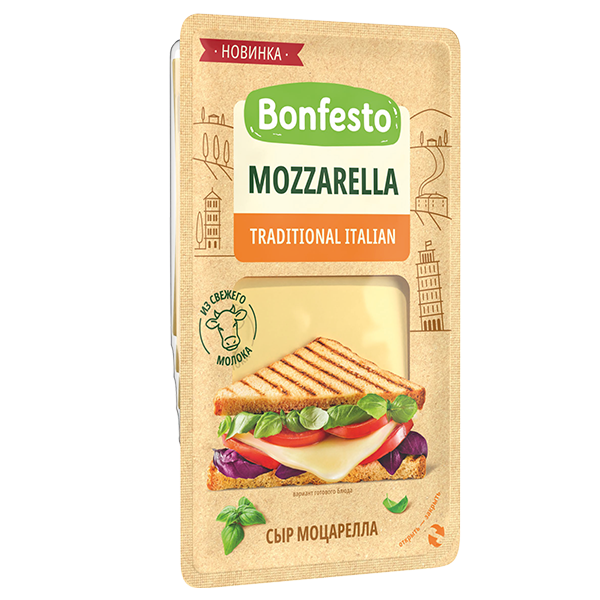 Тонкие слайсы моцареллы со сливочным вкусом, хорошо плавящиеся при нагреве. Формат слайсов обеспечивает равномерное плавление и быстрое приготовление пиццы, лазаньи, горячих сэндвичей. Состав: