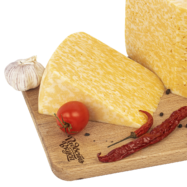 Мраморный сыр ТМ Радость Вкуса изготавливается из коровьего молока и выделяется среди прочих сыров необычным рисунком на срезе. Красивые разводы белого и оранжевого цвета изысканно переплетаются, напоминая мраморную текстуру.Сыр имеет нежный сладковатый вкус со сливочными нотками.