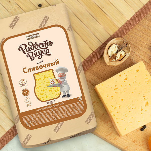 Сыр Сливочный ТМ Радость Вкуса имеет мелкий резной глазок и нежный сливочный вкус. Подходит для бутербродов и приготовления различных блюд. Раскрывает свой вкус в сочетании с фруктами и медом.Свежий багет в сочетании с сыром Сливочный станет вашим любимым перекусом!