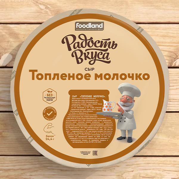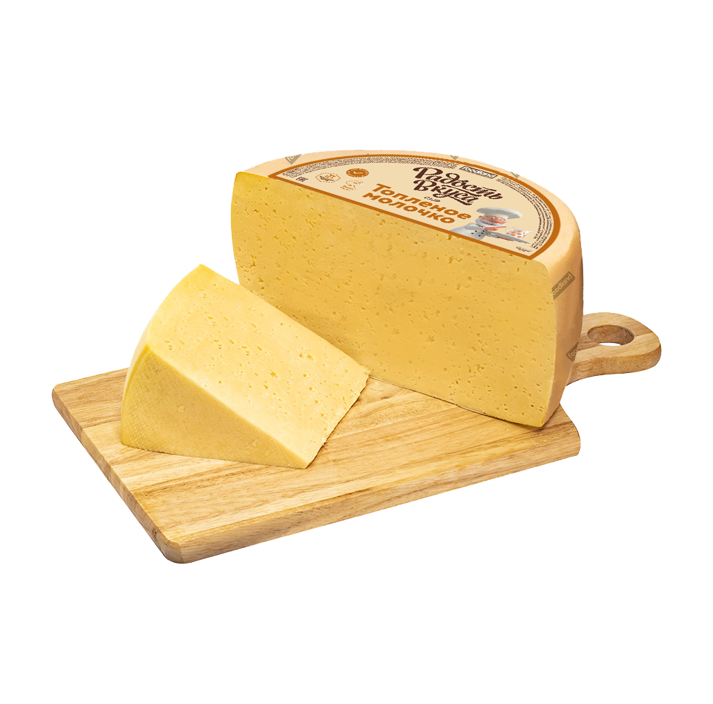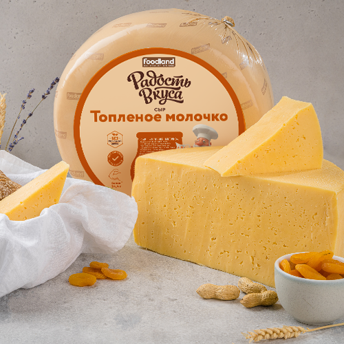 Сыр Топленое молочко ТМ Радость Вкуса отличается нежным вкусом топленого молока, обладает насыщенным ароматом, имеет мелкий резной глазок.Идеально сочетается с фруктами, ягодами, орехами и медом.